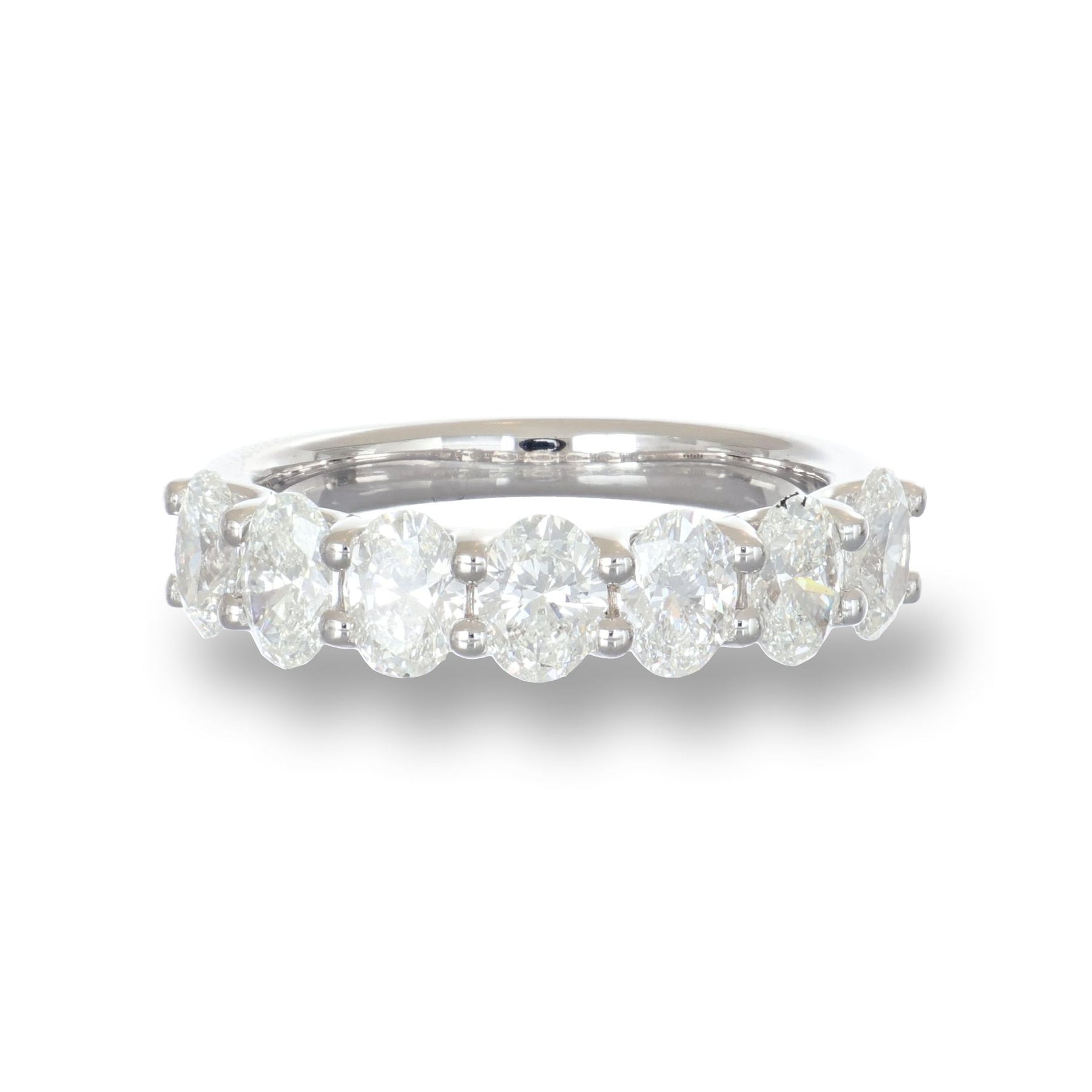 Klassik mit kraftvoller Präsenz. Dieser edle Ring aus 750/- Weißgold präsentiert sieben oval facettierte Diamanten in absoluter Top-Qualität. Mit einem Gesamtgewicht von 2,20ct. erstrahlen die Steine in einem harmonischen, funkelnden Band.