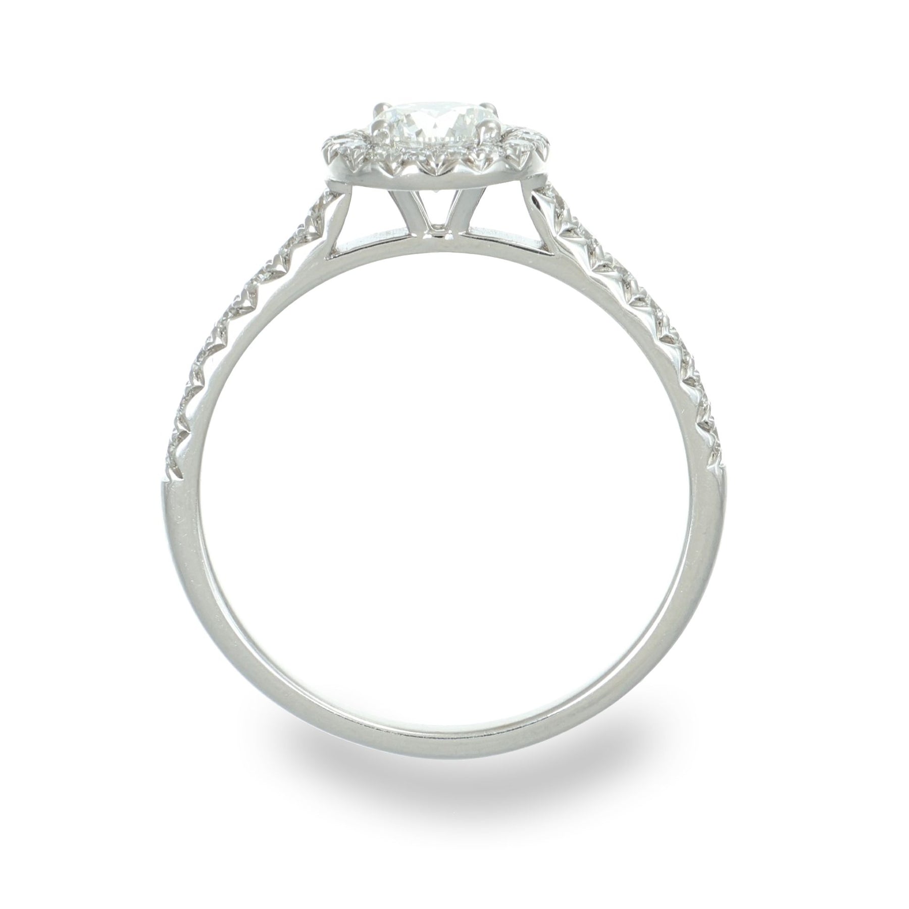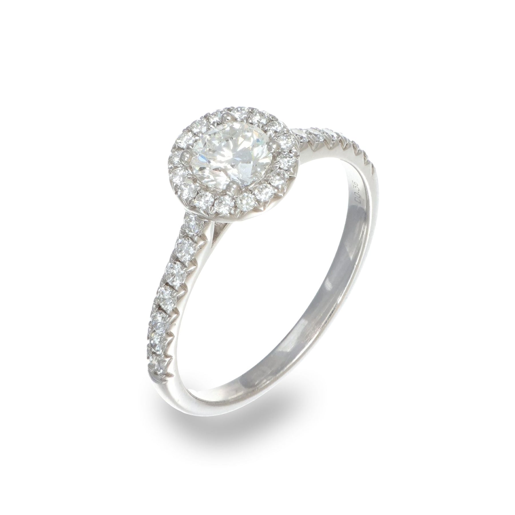 Dieser elegante Ring aus 750/- Weißgold ist ein strahlendes Symbol der Liebe. Im Zentrum funkelt ein runder Brillant, umgeben von einem feinen Halo aus 30 weiteren Diamanten, die auch die zart gearbeitete Ringschiene schmücken.