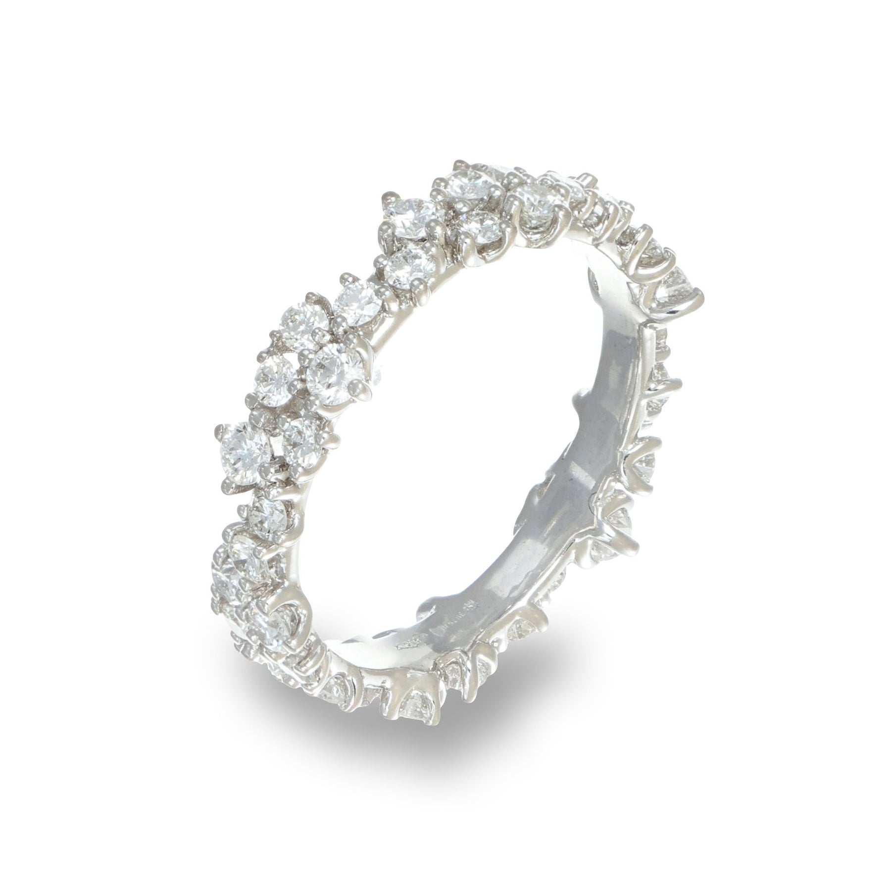 Jeder Stein ist präzise gefasst und ergibt ein harmonisches, funkelndes Gesamtbild – ideal als Vorsteckring, Ehering oder als besonderes Schmuckstück für unvergessliche Momente.