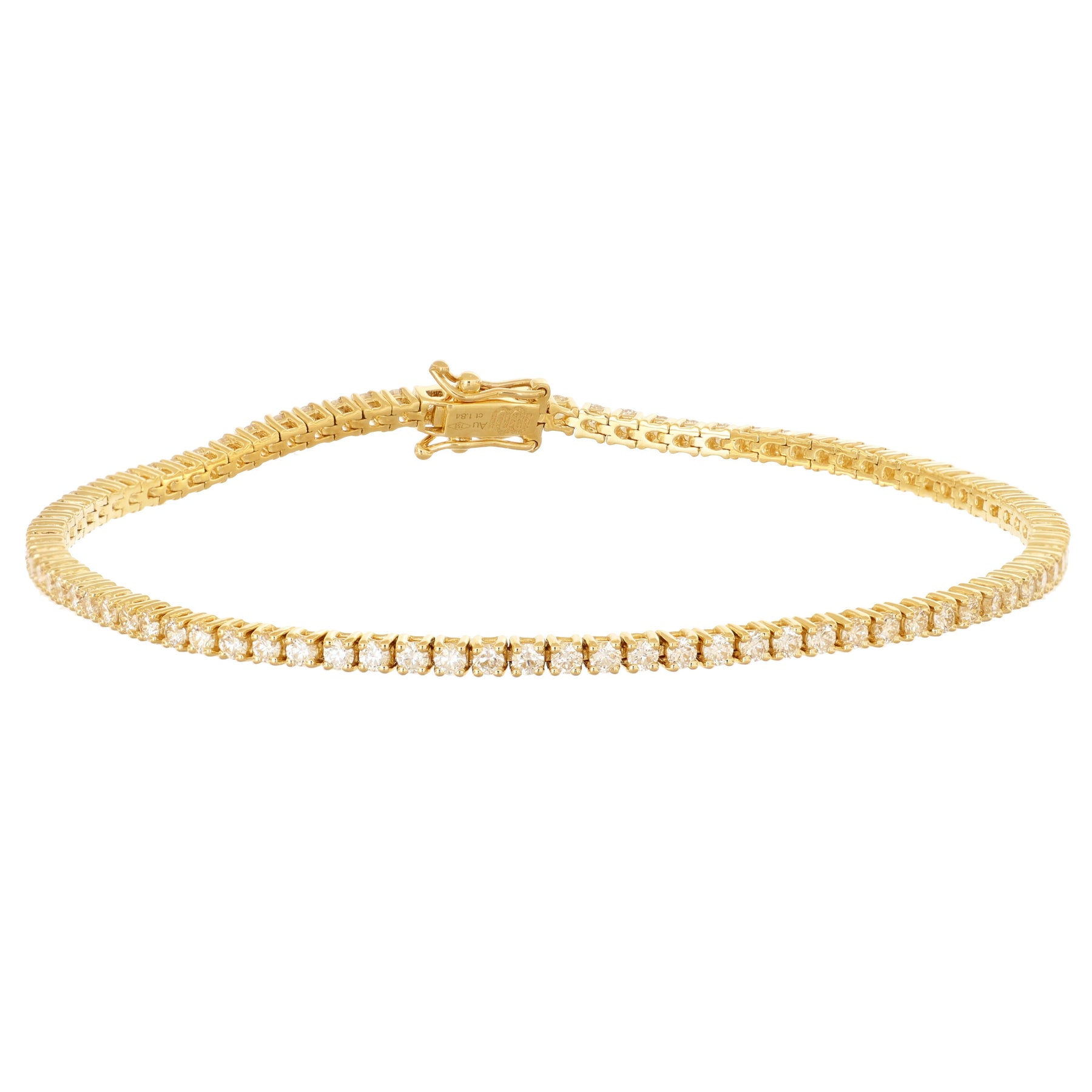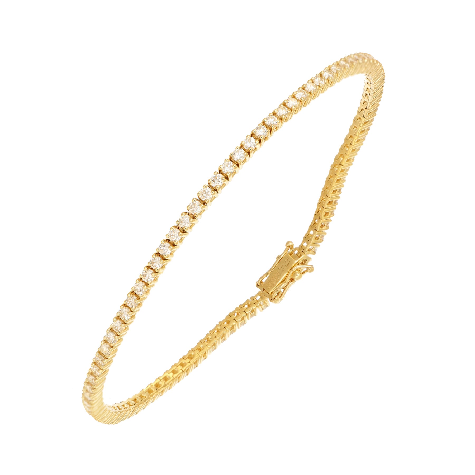 Ein Klassiker neu interpretiert – dieses Tennisarmband aus 750/- Gelbgold besticht durch seine luxuriöse Ausstrahlung und meisterhafte Verarbeitung. 88 funkelnde Brillanten mit einem Gesamtgewicht von 1,84 ct sind in perfekter Harmonie gefasst und verleihen dem Armband eine gleichmäßige, leuchtende Linie aus Licht. Die bewegliche Gliederstruktur sorgt für höchsten Tragekomfort, während der Sicherheitsverschluss diskrete Eleganz mit praktischer Funktion verbindet. Ein zeitloses Schmuckstück, das moderne Klasse und strahlenden Glamour vereint.